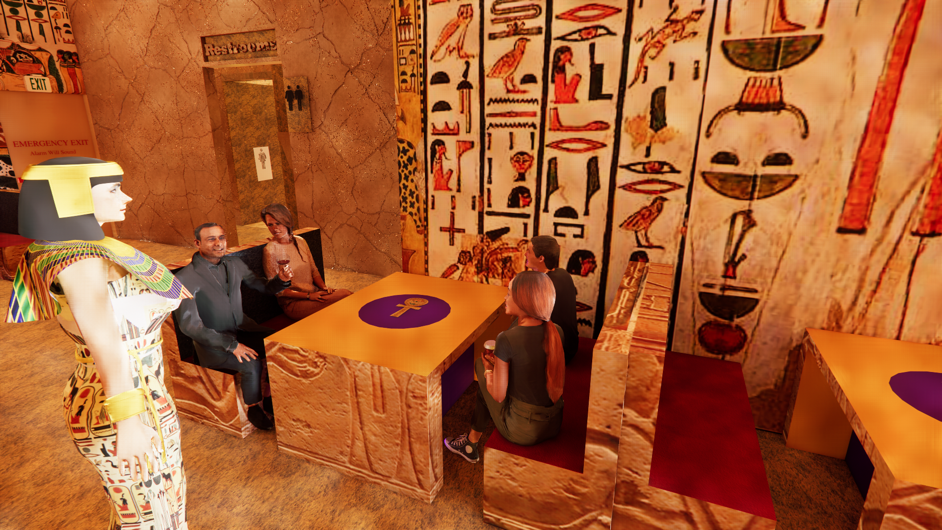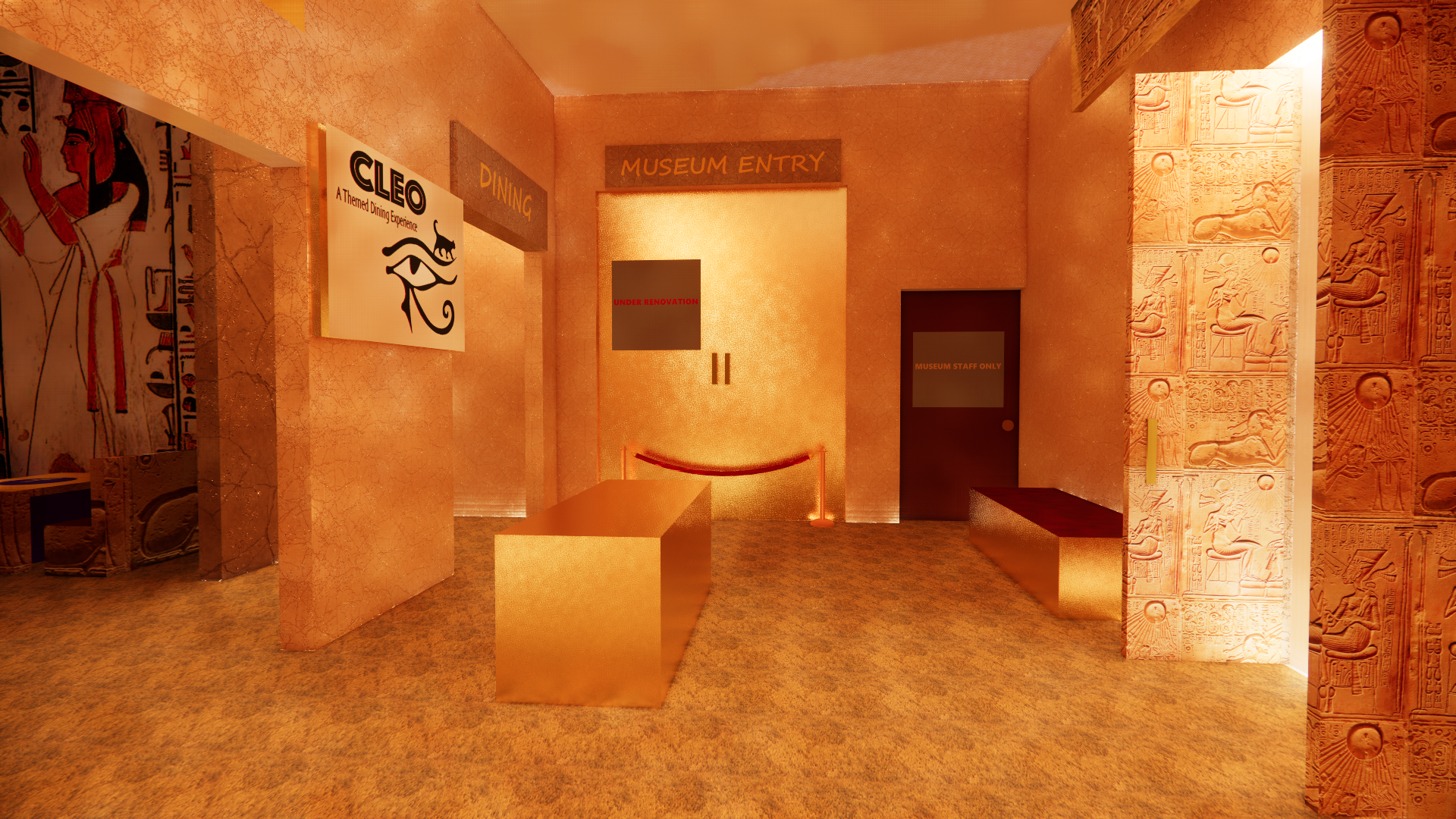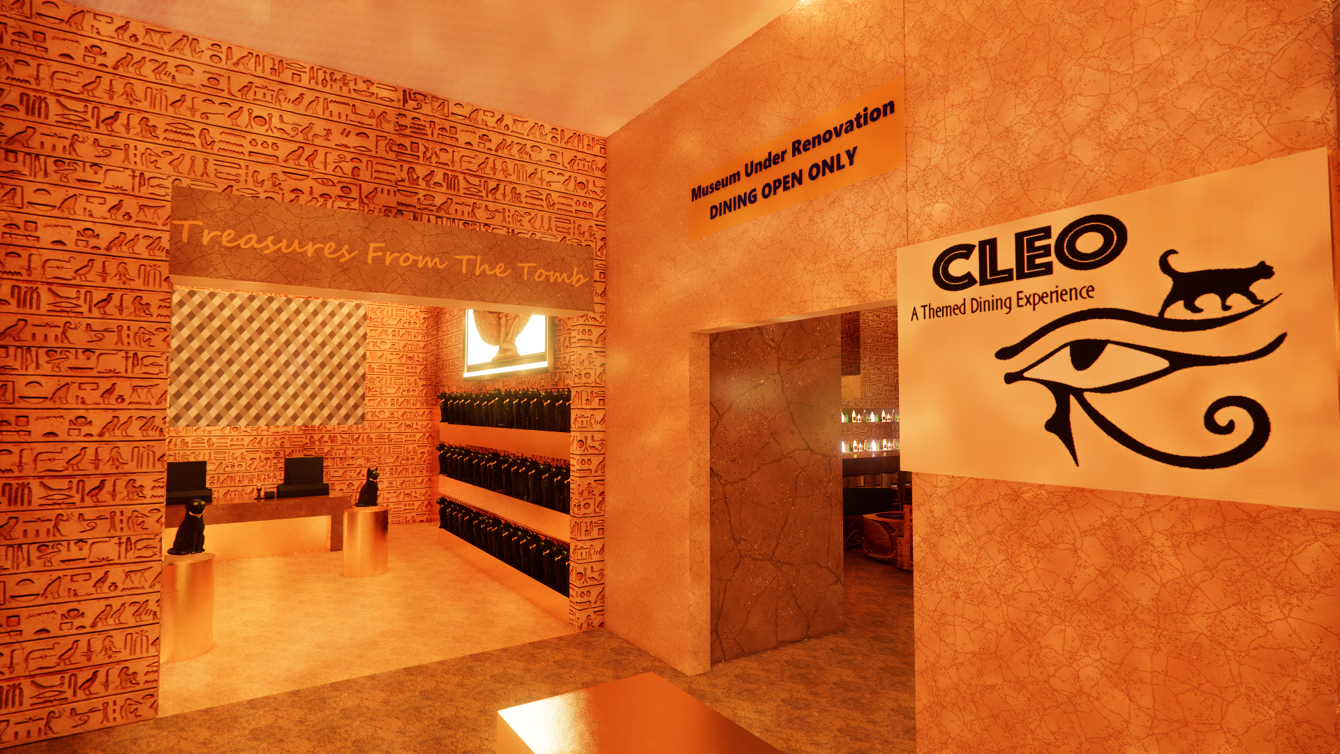 A themed restaurant concept set within an Egyptian museum and focuses on the legend of Cleopatra. Features a variety of projection and thematic elements.