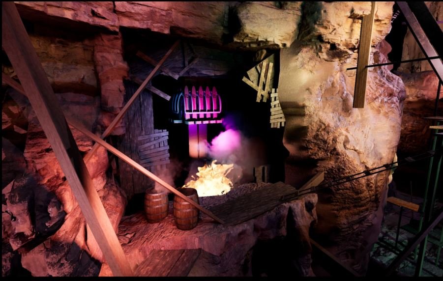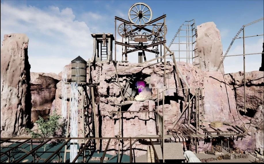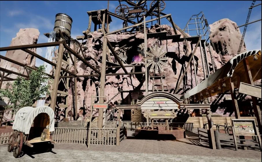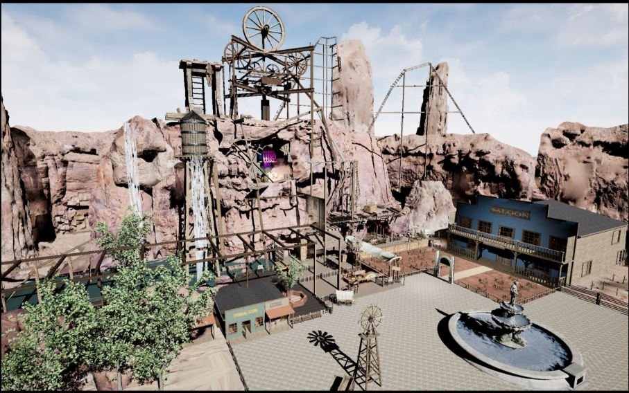 The Devil’s Bend is a theme park land featuring a variety of wild west themed attractions. Unreal Engine was utilized using asset packs to decorate the set. 3D models, textures and material assets provided by Dekogon Studios LLC, Aku Mäkelä, Jacob Norris, Andrew Svanberg Hamilton, Epic Games.